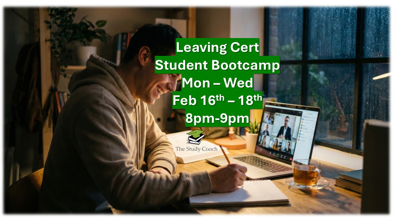 Unsure if this is the right seminar for the student in your life? Email me sean@thestudycoach.ie or WhatsApp me 087 9606741 and I'd be happy to help answer any questions you may have.
